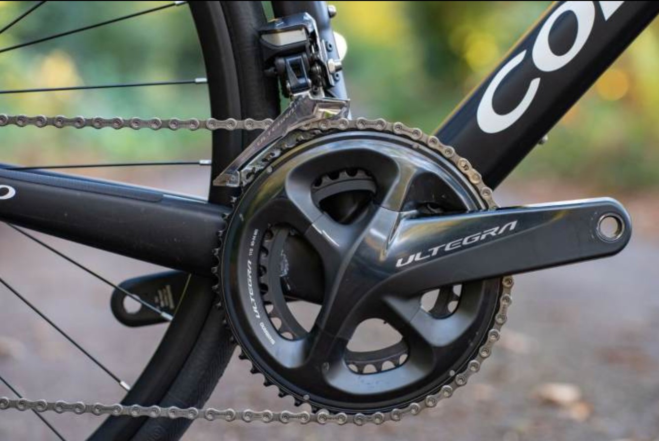 Shimano Ultegra 11×2 speed electronic groupset including the chainset and powerful hydraulic disc brakes. None of the components are showing excessive wear and shifting is flawless. Cosmetic marks are from storage. Both Ebike and Di2 chargers are included.